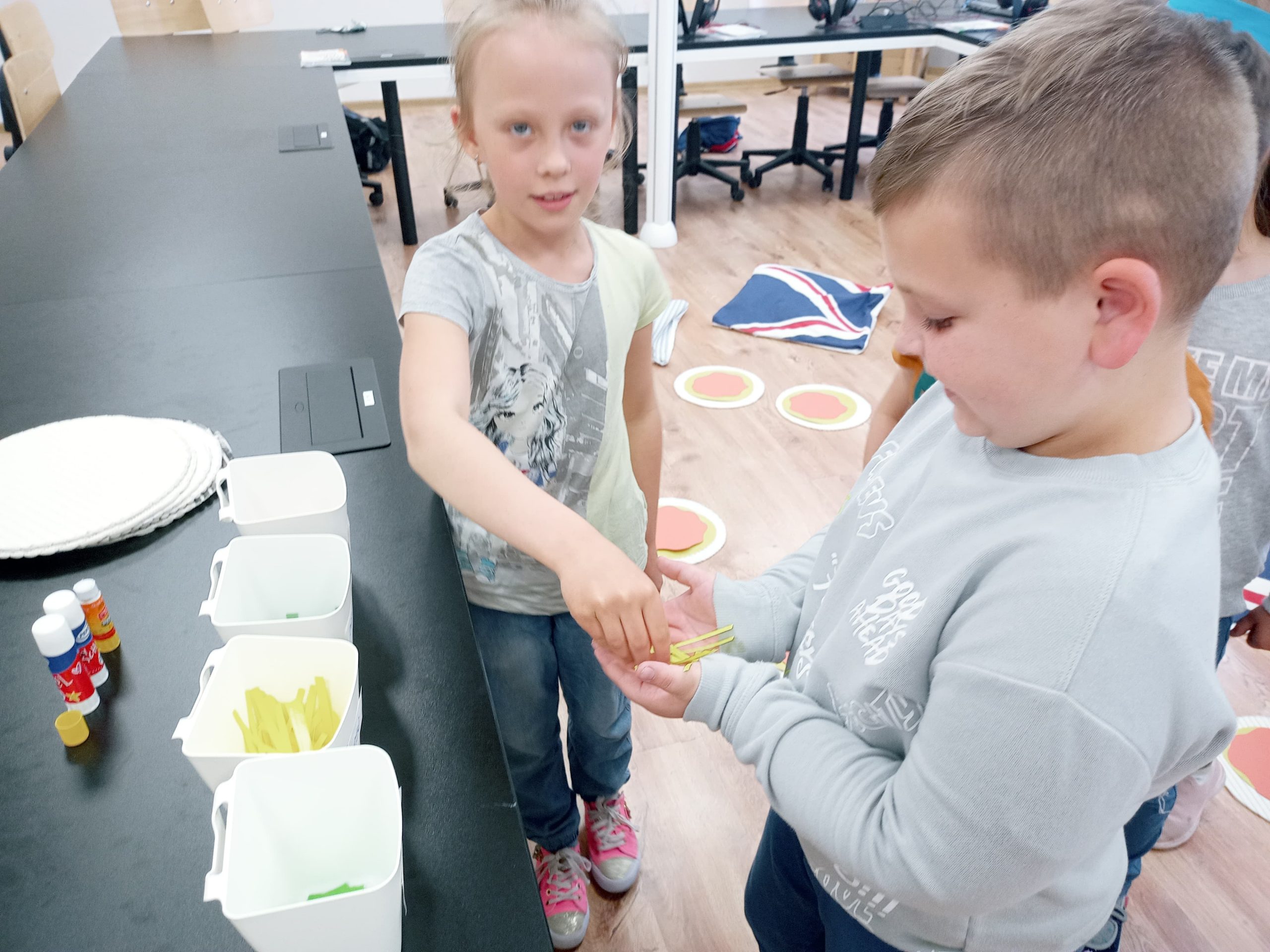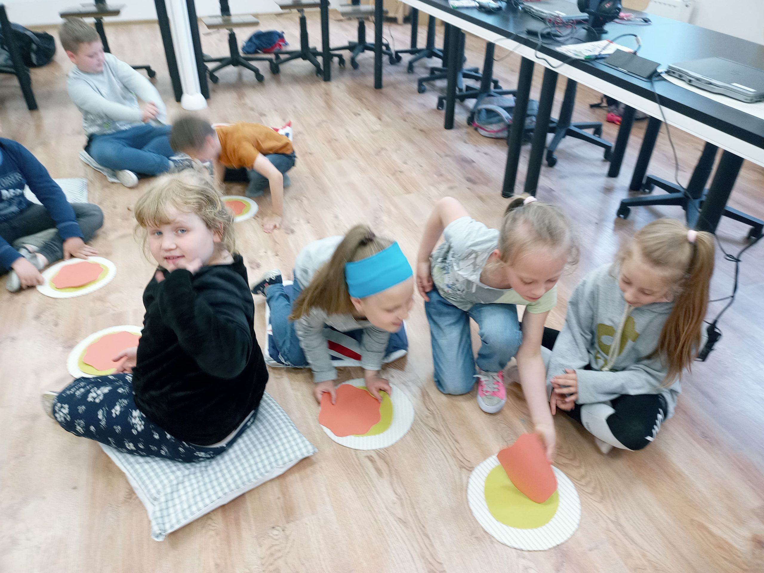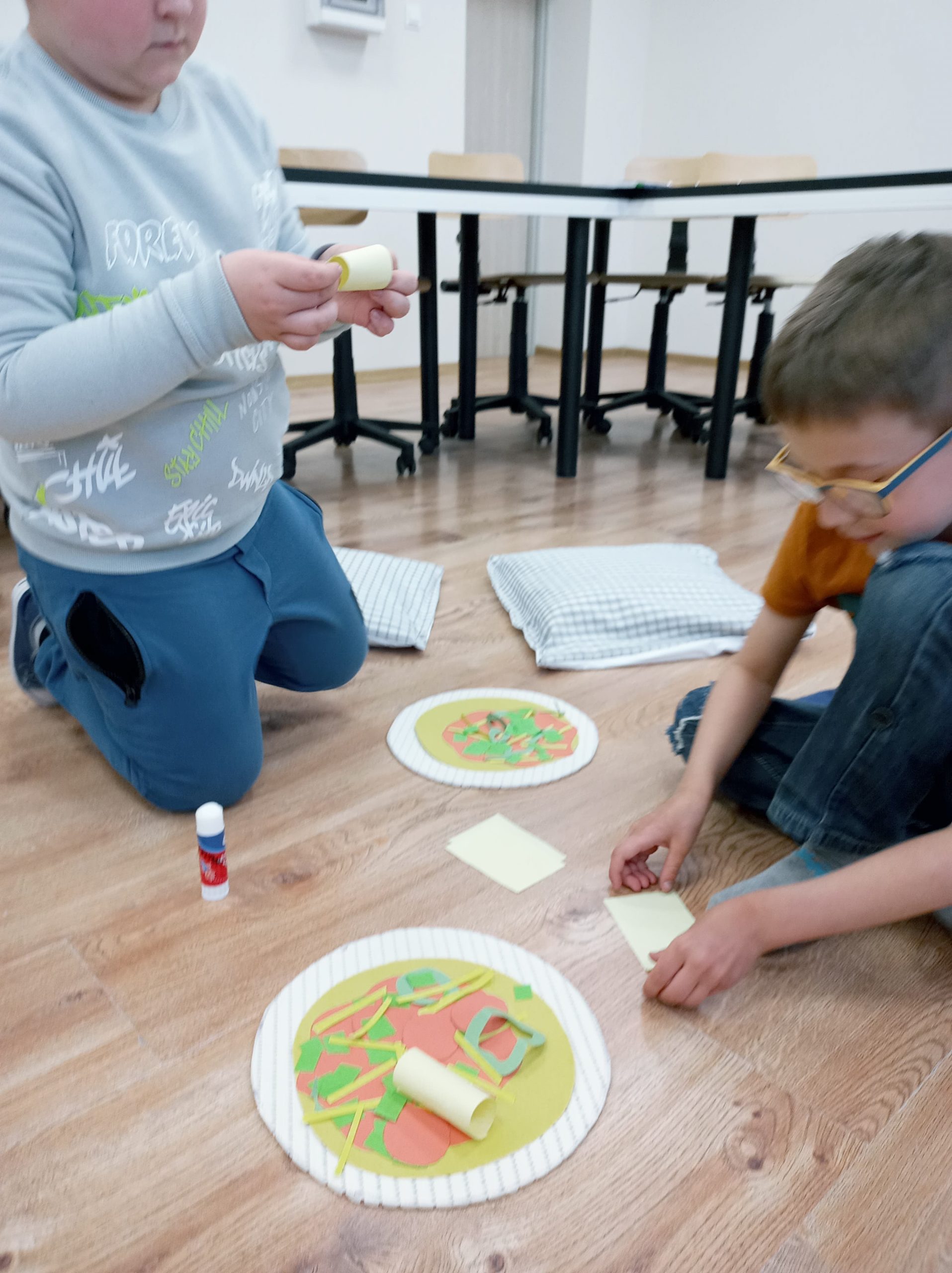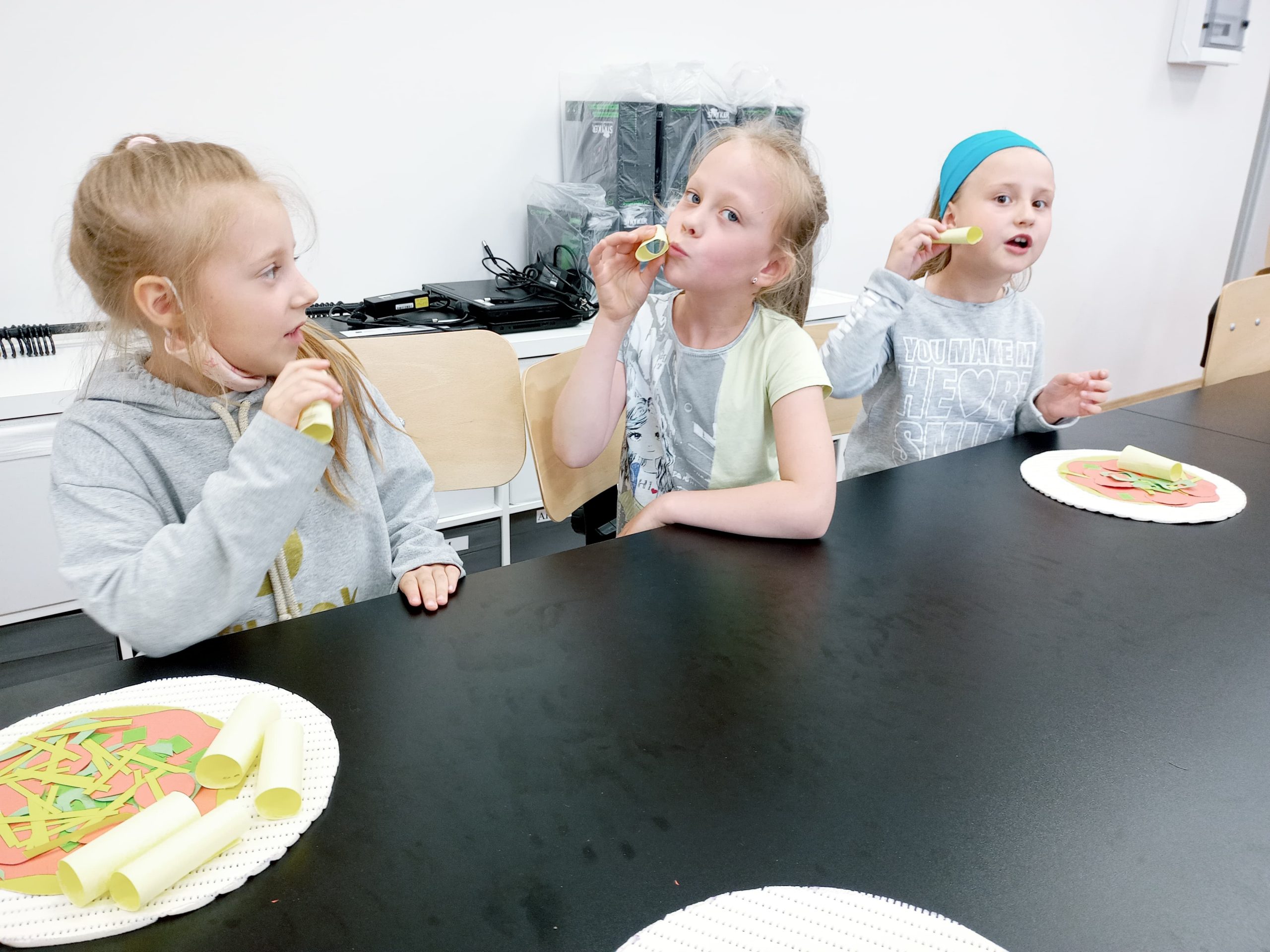 Ogromną radość sprawiła im praca na komputerach, a jeszcze większą tworzenie własnej pizzy (co prawda z papieru, ale zawsze coś)