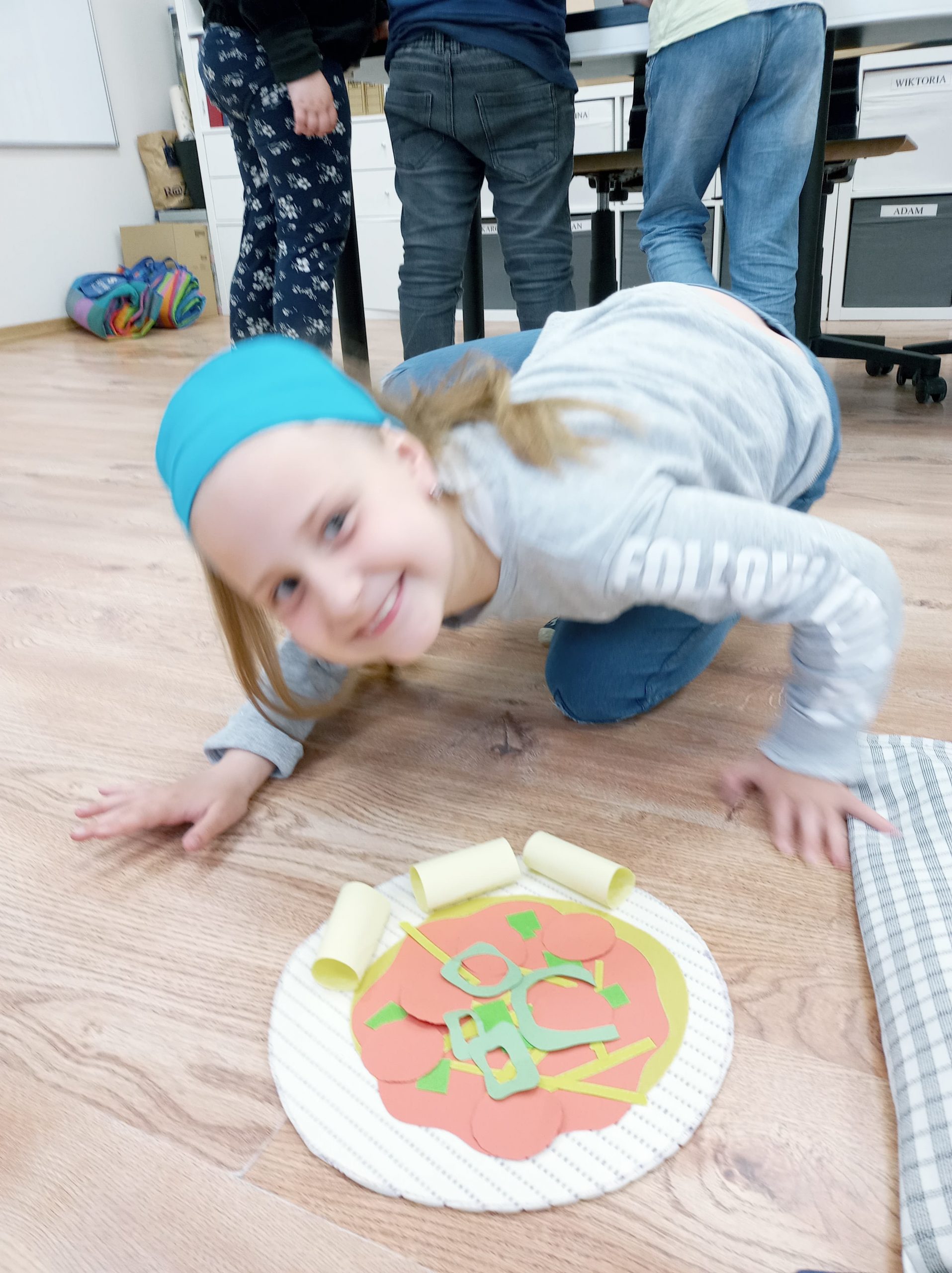 Dzisiaj bawiliśmy się w pizzerię i utrwalaliśmy słownictwo związane z jedzeniem.